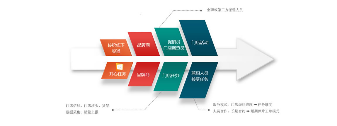 零售終端促銷員日常表現(xiàn)評估、銷量上報、貨架缺貨管理、促銷員出勤管理,后臺基本數(shù)據(jù)維護(hù)、生意分析決策